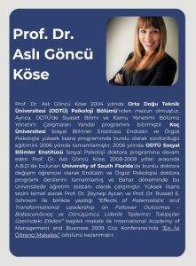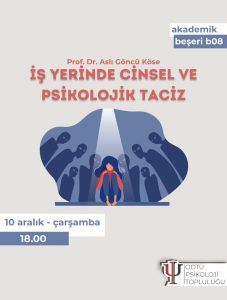 Bölüm başkanımız Prof. Dr. Aslı GÖNCÜ-KÖSE, 10 Aralık 2025 tarihinde ODTÜ Psikoloji Topluluğu tarafından düzenlenen etkinlikte “İş Yerinde Cinsel ve Psikolojik Taciz” konulu konuşmasını gerçekleştirecektir. Tüm öğrencilerimiz davetlidir.
